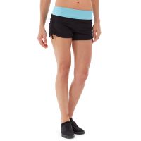 • Black rouched shorts with mint waist.